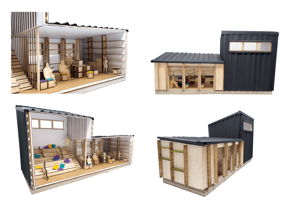The brief for this project detailed pairs working collaboratively to design one of four key working spaces associated with Impact Hub: Birmingham to be proposed as a temporary unit whilst the construction of a more permanent home is to be carried out. At a later stage of the project, pairs working on designing alternative spaces for Impact hub would come together to form a collective and theoretical architectural practice. These collectives or ‘practices’ then designed conceptual ways in which these buildings would interact with one another and make the most of existing or creating new circulation routes within Digbeth, Birmingham- a key space for creatives.