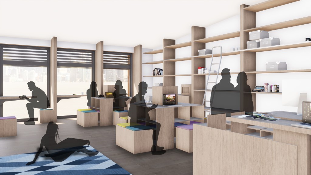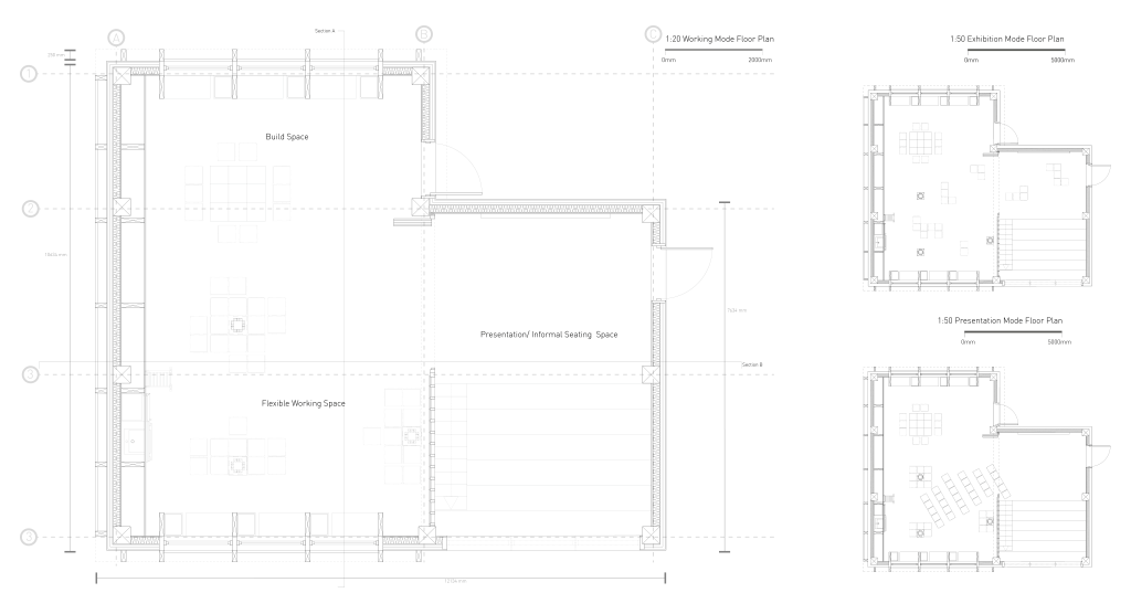 As part of the pair work, Interblock was designed. This was a ‘workshop’ space for Impact Hub: Birmingham and was a collaborative, flexible work space catering for both smaller and larger working groups. The furniture and floor plan was optimised for multiple uses such as casual desk working, exhibition and presentational modes; making the most of bespoke cubes that could be used as chairs or stacked to form desks.
