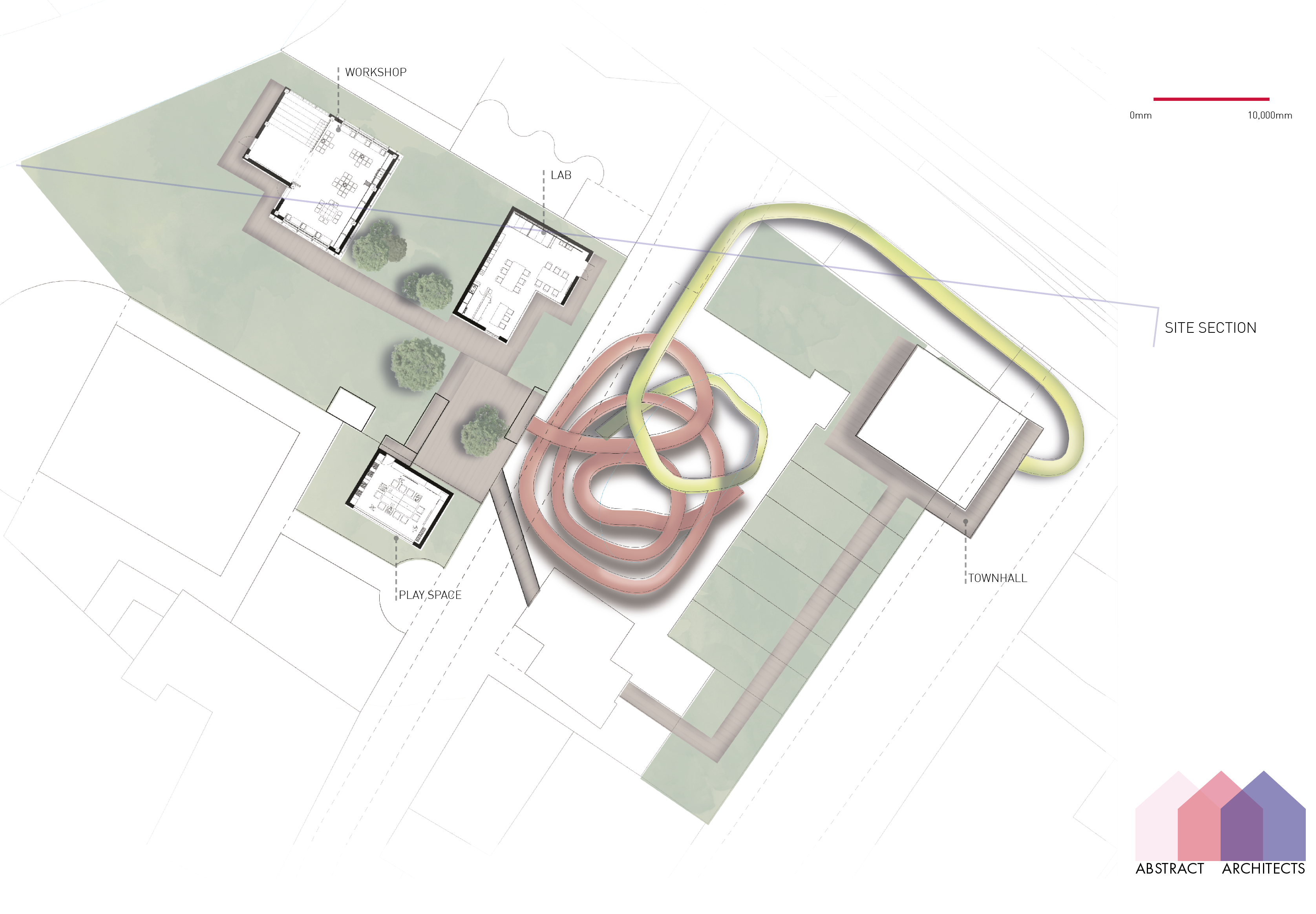 When forming our collective, we formed Abstract Architects; a practice with an ethos of playful architecture that interacted with the urban environment in intriguing ways. Our buildings were placed on the roofs of the Custard Factory buildings, making the most of existing ancillary spaces and vertical circulation routes. New pedestrian circulation routes were designed in the form of bridges and slides that provided an alternative means of accessing the existing courtyard.