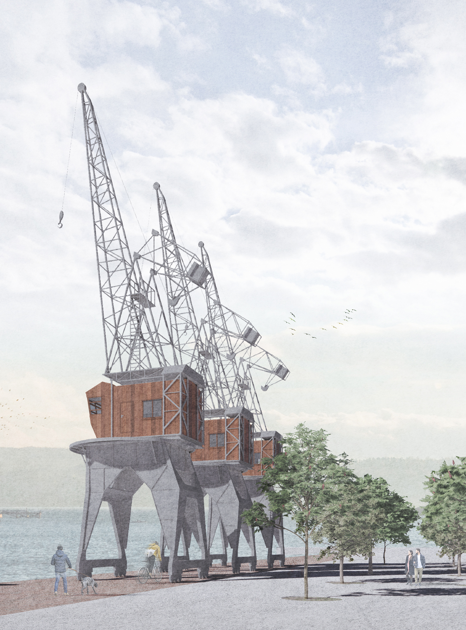Industribønne proposes the adaptive reuse of an existing coffee factory located on the historically industrial site of Filipstad, Oslo, currently in transition in preparation for redevelopment. The thesis interrogates the studio brief of ‘inhabiting the wall’ through explorations of entrance and depth within the idea of the monumental architectural wall. The proposal intends to be a vessel in preserving the existing rich cultural and industrial heritage whilst reinforcing connections both to the Oslofjord and urban city centre.